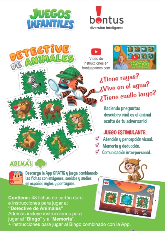 48 fichas de cartón duro e instrucciones Además incluye los juegos "Bingo" y "Memoria" + instrucciones para jugar al Bingo combinado con la app